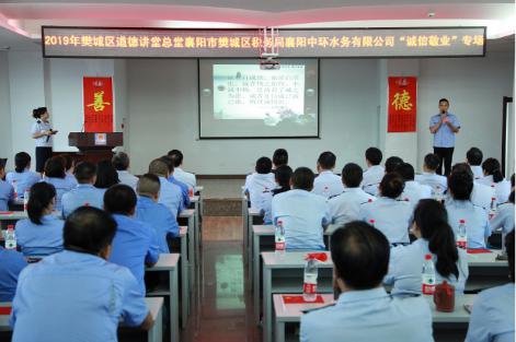 7月25日下午,根據(jù)襄陽市委宣傳部、市文明辦的要求,襄陽中環(huán)水務(wù)有限公司與樊城稅務(wù)局聯(lián)合舉辦了一期主題為“誠信敬業(yè)”的道德講堂活動。襄陽中環(huán)公司紀(jì)委書記、副總經(jīng)理焦為民;財務(wù)總監(jiān)王平;工會主席徐玲,以及公司各基層單位、機(jī)關(guān)部室代表參加了活動。