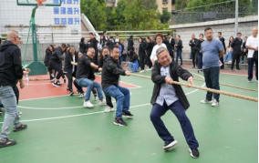 當拔河比賽口令響起,只見參賽的隊員們緊握長繩,卯足了勁拼命往后拉,未能上場參賽的候補隊友們?yōu)樽约罕荣愱犛褏群爸?。吶喊聲、歡呼聲此起彼伏,現(xiàn)場激烈的比賽將整個活動推向了高潮。