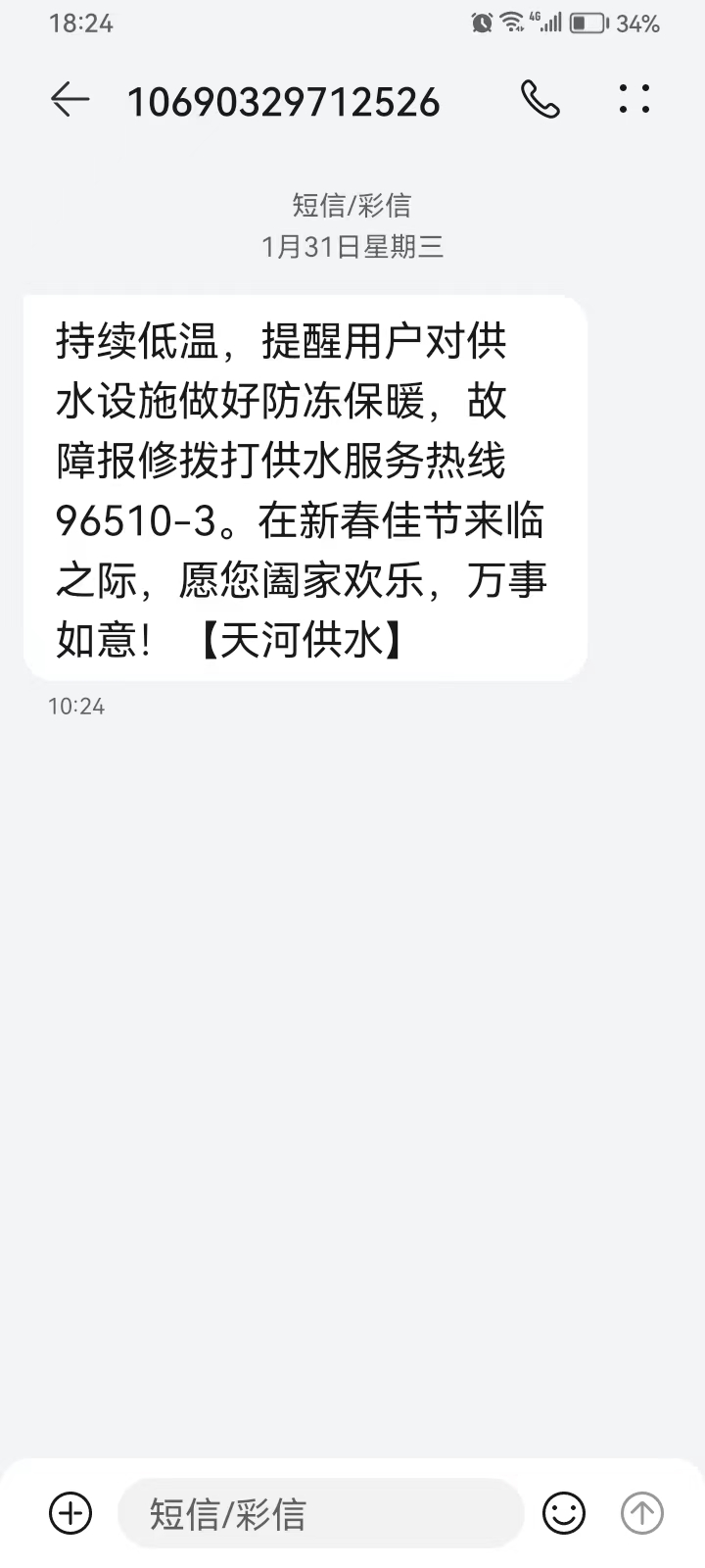 為提高市民防凍保溫意識,公司加大供水設(shè)施防凍保暖宣傳力度,在官網(wǎng)及微信公眾號發(fā)布防凍溫馨提示,給用戶發(fā)送短信累計55000余條,提醒市民做好供水設(shè)施的防寒防凍工作。同時,公司還對各小區(qū)的物業(yè)公司進(jìn)行告知尋訪,持續(xù)巡查重點(diǎn)區(qū)域,在發(fā)現(xiàn)凍損情況時立即采取措施疏通,組織維修更換。